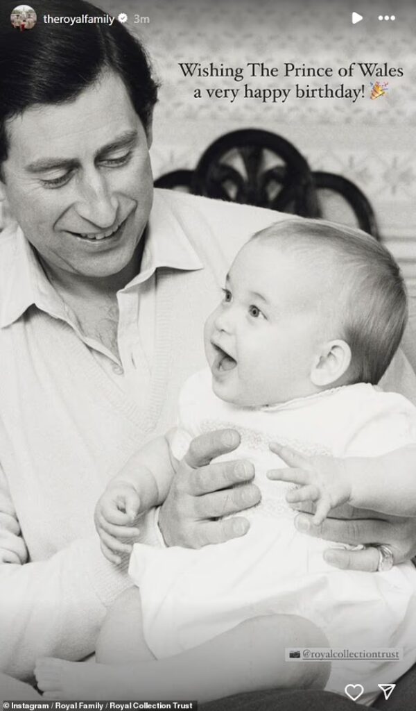 Όπως επιτάσσει η βασιλική παράδοση, η οικογένεια δημοσιεύει φωτογραφίες και ευχές για τα γενέθλια ανώτερων μελών της. Πέρυσι, είχαν αναρτήσει μία ασπρόμαυρη φωτογραφία του Γουίλιαμ με τον πατέρα του Κάρολο, όταν εκείνος ήταν ακόμη διάδοχος.