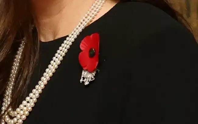 Ακολουθώντας την παράδοση, όλοι φόρεσαν σκούρα ρούχα στολισμένα με κόκκινες καρφίτσες παπαρούνας. Το σύμβολο, που πιστεύεται ότι προέρχεται από το ποίημα του John McCrae “In Flanders Fields”, χρησιμοποιείται από το 1921 για να τιμήσει τα μέλη του στρατού που έχασαν τη ζωή τους στον πόλεμο.