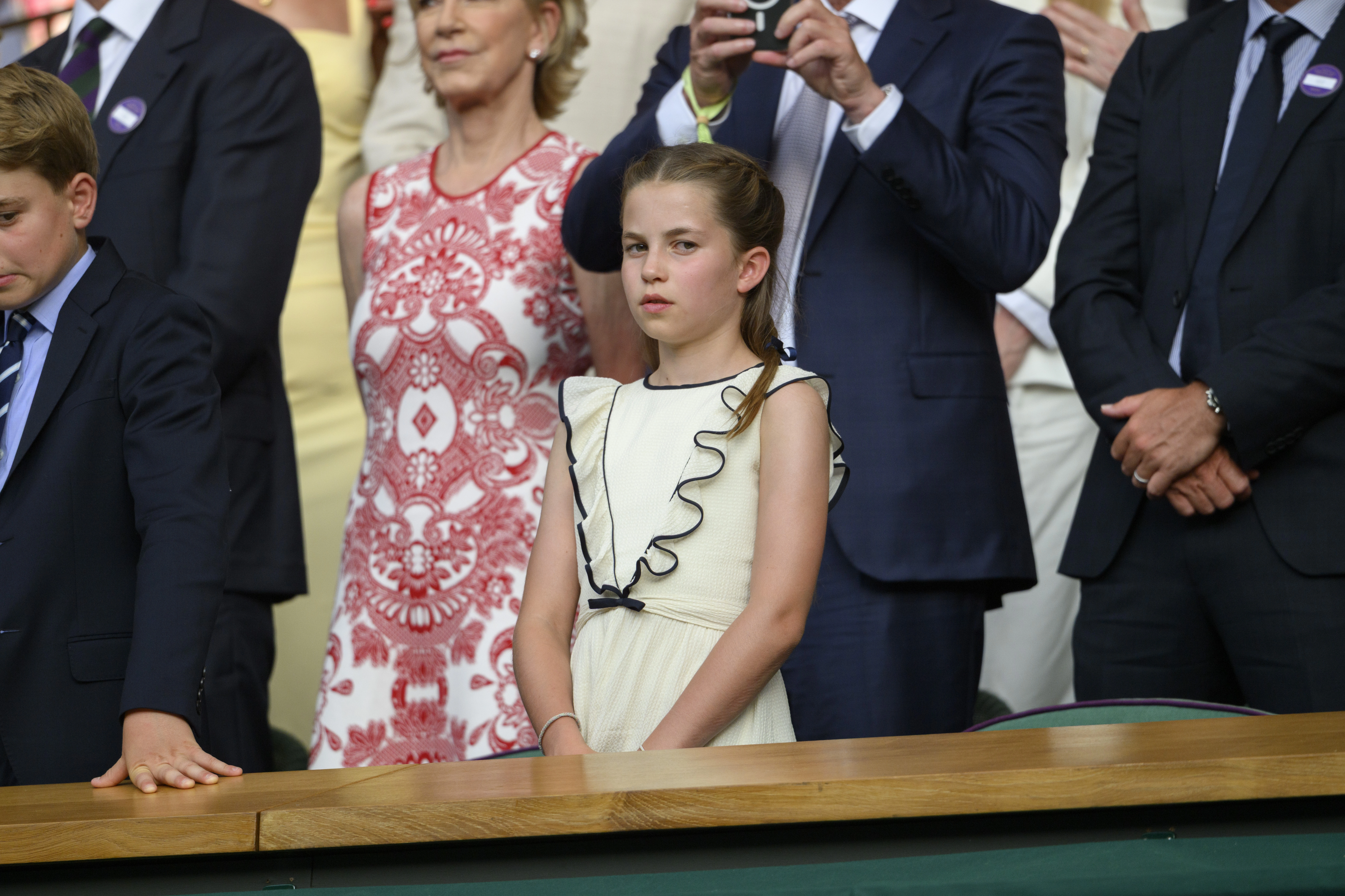 Η πριγκίπισσα Σάρλοτ παρακολούθησε για τρίτη χρονιά τον τελικό του Wimbledon, φορώντας λευκό φόρεμα με μαύρα τελειώματα και παπούτσια Mary Jane. Με πλεξούδες στα μαλλιά και ζωηρό ενδιαφέρον για το τένις, επιβεβαίωσε ξανά την αγάπη της για το άθλημα, όπως και η μητέρα της.