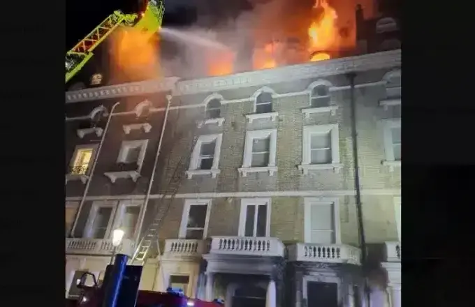 Όταν έφτασε η πυροσβεστική, το μισό ισόγειο του πενταώροφου κτιρίου είχε τυλιχθεί στις φλόγες, σύμφωνα με ανάρτηση της πυροσβεστικής υπηρεσίας του Λονδίνου στην πλατφόρμα X.