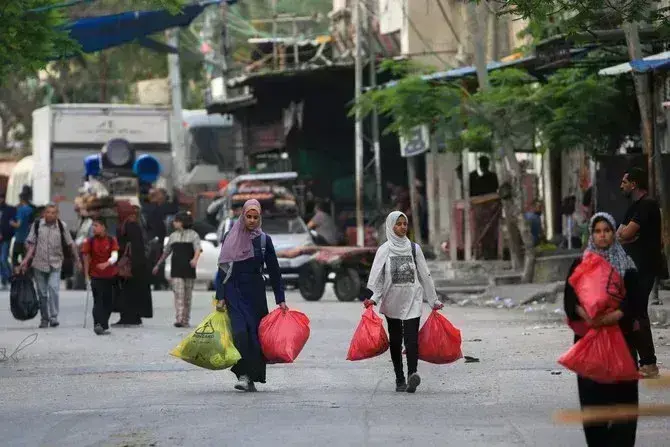 Οι Παλαιστίνιοι εγκαταλείπουν την περιοχή Ταλ αλ-Σουλτάν στη Ράφα με τα υπάρχοντά τους μετά από τα νέα ισραηλινά πλήγματα στην πόλη στη νότια Λωρίδα της Γάζας στις 28 Μαΐου 2024, εν μέσω της συνεχιζόμενης σύγκρουσης μεταξύ του Ισραήλ και της μαχητικής ομάδας της Χαμάς.