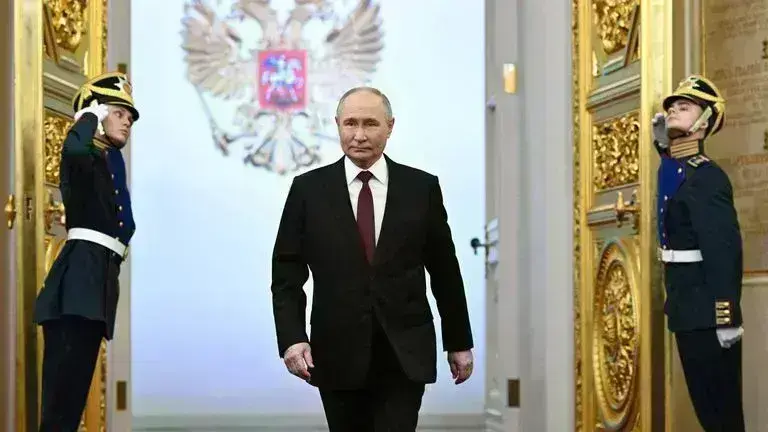 Στην τελετή στο επιχρυσωμένο Μεγάλο Παλάτι του Κρεμλίνου, ο Πούτιν έβαλε το χέρι του στο ρωσικό Σύνταγμα και ορκίστηκε να το υπερασπιστεί ενώ ένα πλήθος επιλεγμένων αξιωματούχων κοιτούσε.