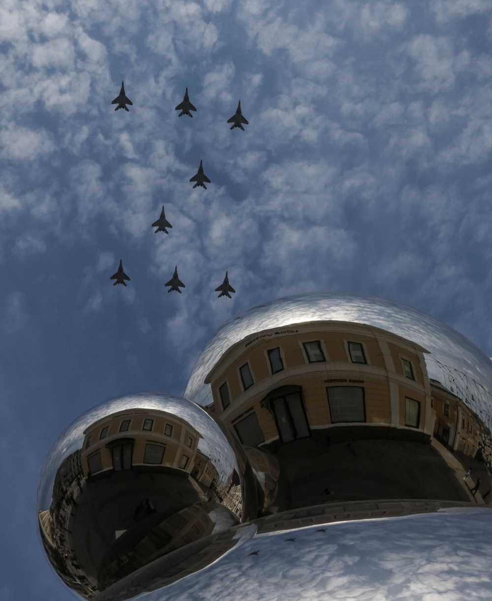Σύμφωνα με το ρωσικό υπουργείο Άμυνας, το «αεροσκάφος της Αποκάλυψης», ένα Ιλιούσιν Il-80, που έχει ειδικά σχεδιαστεί για να επιτρέψει στον Ρώσο πρόεδρο να συνεχίσει να διοικεί τη χώρα από τον αέρα, στην περίπτωση ενός πυρηνικού πολέμου, θα πετάξει πάνω από την Κόκκινη Πλατεία.