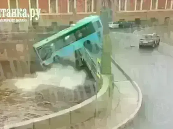 In St. Petersburg, a passenger bus collided with two cars and flew into the water – there were people on board pic.twitter.com/Xi6SW2Efs0