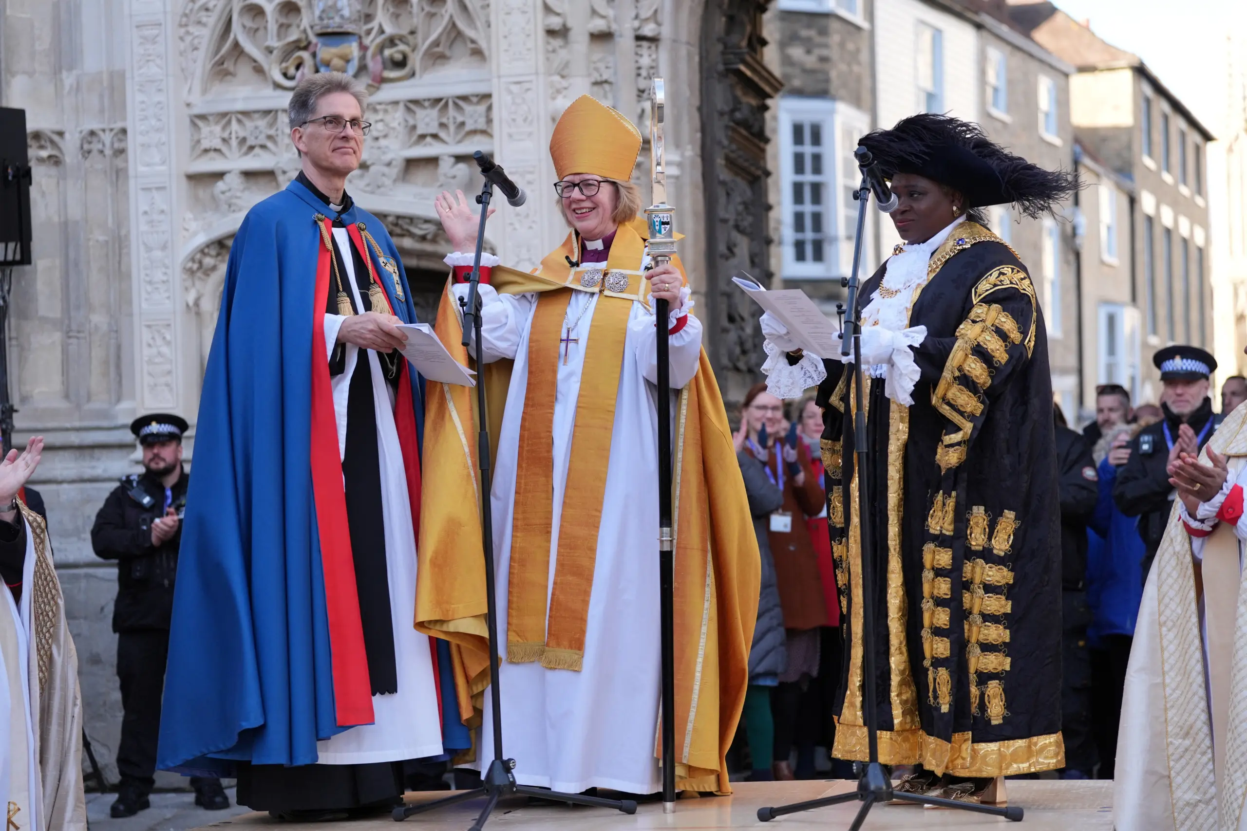 Η επίσημη ενθρόνισή της έλαβε χώρα την Τετάρτη, 25 Μαρτίου, στον καθεδρικό ναό του Καντέρμπουρι, παρουσία περισσότερων από 2.000 ατόμων, μεταξύ των οποίων ο πρίγκιπας Ουίλιαμ και η σύζυγός του Κέιτ, πριγκίπισσα της Ουαλίας, οι οποίοι εκπροσώπησαν τον βασιλιά Κάρολο, καθώς και θρησκευτικοί ηγέτες από όλο τον κόσμο.