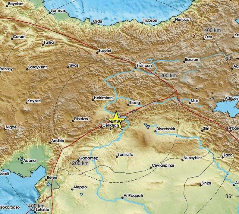 Ο σεισμός είχε επίκεντρο 30 χιλιόμετρα νοτιοανατολικά της Μαλάτιας, ενώ το εστιακό βάθος υπολογίζεται σε 8 χιλιόμετρα.