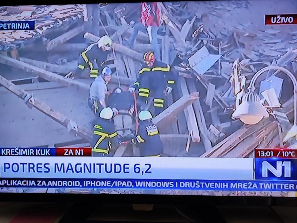 Το τηλεοπτικό δίκτυο N1 επεσήμανε ότι το επίκεντρο του σεισμού ήταν στην πόλη Πέτρινια, 50 χιλιόμετρα από το Ζάγκρεμπ, και μετέδωσε εικόνες από διασώστες να ανασύρουν ζωντανούς έναν άνδρα και ένα παιδί από τα ερείπια ενός κτιρίου.