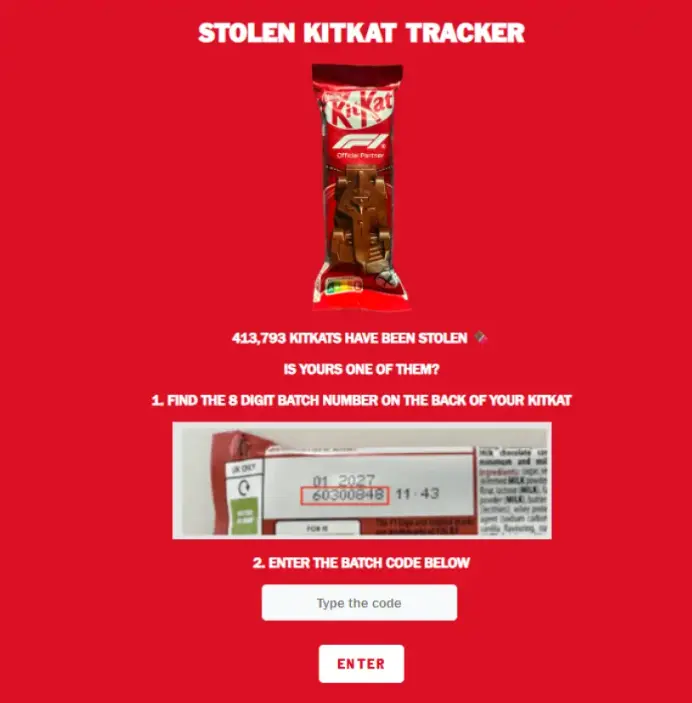 Μέσω ειδικής πλατφόρμας στα social media της Nestlé, ο κόσμος μπορεί να εντοπίσει τις χαμένες KitKat χρησιμοποιώντας τον αριθμό παρτίδας στη συσκευασία.