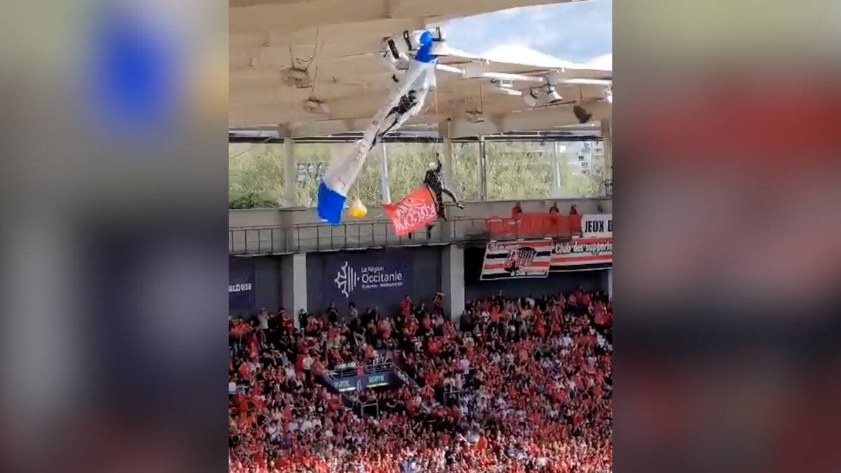 Les images impressionnantes de l’accident du parachutiste au Stadium de Toulouse.
