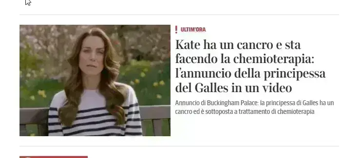 «Η Κάθριν, πριγκίπισσα της Ουαλίας, έχει καρκίνο» αναφέρει στον τίτλο του το CNN, το οποίο το ανέδειξε σε πρώτο θέμα.