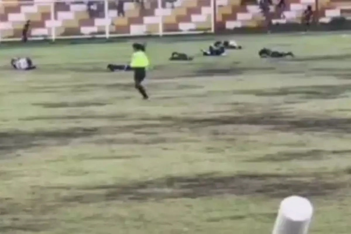 Στα social media κυκλοφόρησαν βίντεο με τη στιγμή που ο κεραυνός πέφτει και χτυπάει πολλούς ποδοσφαιριστές, οι οποίοι σωριάστηκαν ταυτόχρονα στον αγωνιστικό χώρο.