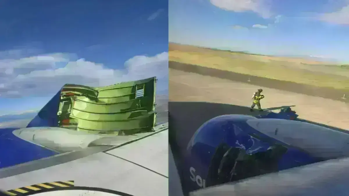 Επιβάτης μοιράστηκε μέσω X βίντεο στο οποίο εικονίζεται το κάλυμμα του κινητήρα καθώς φεύγει από τη θέση του και γίνεται κομμάτια, που παρασύρονται από τον άνεμο.