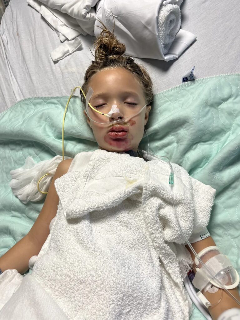 Ο Τζος Σέλμπι έτρεξε αμέσως για να τη βοηθήσει, αλλά η ουσία ήταν τόσο κολλώδης και παχύρευστη που ήταν δύσκολο να την αφαιρέσει. Η Σκάρλετ μεταφέρθηκε στο Νοσοκομείο Παίδων του Σεντ Λούις, όπου οι γιατροί την τοποθέτησαν σε τεχνητό κώμα για τρεις μέρες, λόγω των σοβαρών εγκαυμάτων που υπήρχαν στα χείλη και το στόμα της. Της έβαλαν σωλήνα σίτισης κατά τη διάρκεια της παραμονής της στο νοσοκομείο και υπέφερε από έντονο πόνο.