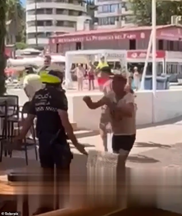 Επίσης, ένας άλλος τουρίστας που φορούσε μαγιό και προσπάθησε να παρέμβει κατά τη διάρκεια φραστικής διαμάχης, περικυκλώθηκε από επτά αστυνομικούς, ακινητοποιήθηκε και συνελήφθη.