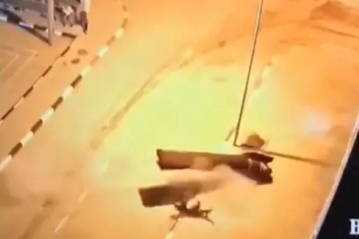 Τα πλάνα έδωσε στη δημοσιότητα το Ισραήλ. Δείχνουν έναν άνδρα να κινείται στον δρόμο στο χωριό Νουέιμα της Δυτικής Όχθης κοντά στην Ιεριχώ, την ώρα που ξαφνικά ένα μεγάλο μέρος ιρανικού πυραύλου πέφτει από τον ουρανό.