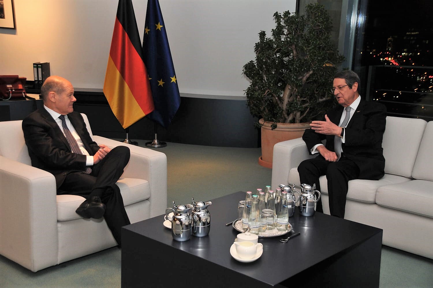Ο πρόεδρος της Κυπριακής Δημοκρατίας από την πλευρά του, ευχαρίστησε τη Γερμανία, τόσο για τη συνεπή «θέση αρχών» που τηρεί στο Κυπριακό, όσο και για την έμπρακτη αλληλεγγύη που επιδεικνύει στο μεταναστευτικό, καθώς ανέλαβε 500 αιτούντες άσυλο οι οποίοι είχαν φθάσει στην Κύπρο. Ο κ. Αναστασιάδης έκανε λόγο για «εργαλειοποίηση των μεταναστών» από την πλευρά της Τουρκίας και σημείωσε ότι έχει διαβιβάσει στοιχεία και στη γερμανική κυβέρνηση σχετικά με το πώς μετανάστες προωθούνται από την Τουρκία μέσω της Νεκρής Ζώνης, στις περιοχές που ελέγχονται από την Κυπριακή Δημοκρατία.