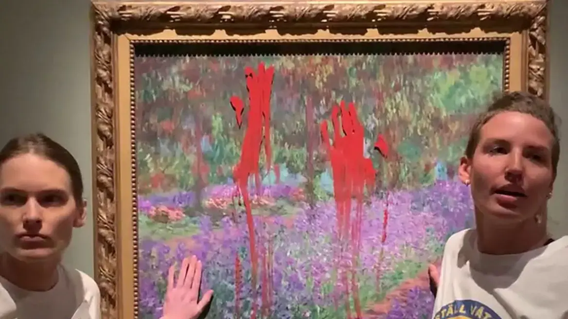 Deux femmes ont été arrêtées par la police suédoise après avoir jeté de la peinture sur un tableau du maître français Claude Monet au musée national suédois de Stockholm. Elles ont ensuite collé leurs mains à la peinture. pic.twitter.com/0ITM1GplaN