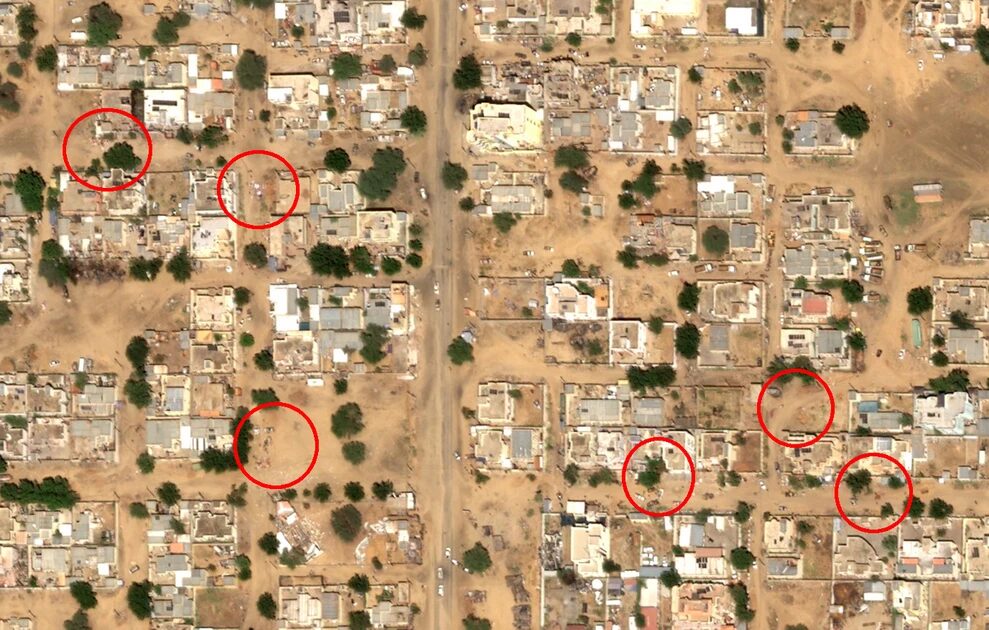 Η ανάλυση δείχνει τουλάχιστον τέσσερις νέες συστάδες από πτώματα που δεν ήταν ορατές σε εικόνες προηγούμενων ημερών· ορισμένα αντικείμενα έχουν μέγεθος περίπου 1,1 με 1,9 μέτρα.