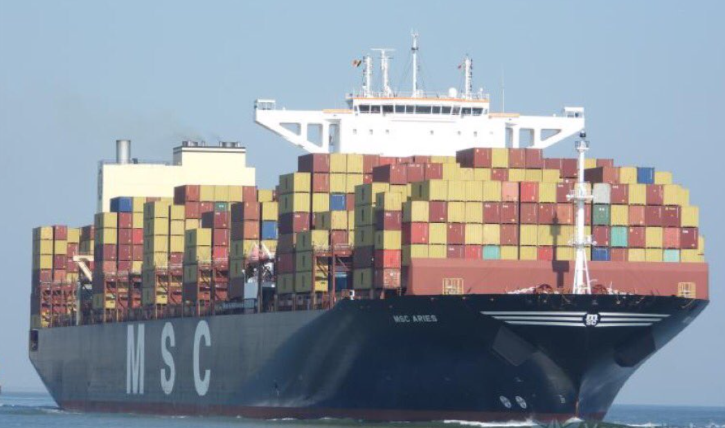 Το εμπλεκόμενο πλοίο είναι πιθανότατα το MSC Aries με πορτογαλική σημαία, ένα πλοίο μεταφοράς εμπορευματοκιβωτίων που συνδέεται με την εταιρεία Zodiac Maritime με έδρα το Λονδίνο. Η Zodiac Maritime αποτελεί μέρος του ομίλου Zodiac του ισραηλινού δισεκατομμυριούχου Eyal Ofer. Η Zodiac αρνήθηκε να σχολιάσει και παρέπεμψε τις ερωτήσεις στην MSC, η οποία δεν απάντησε.