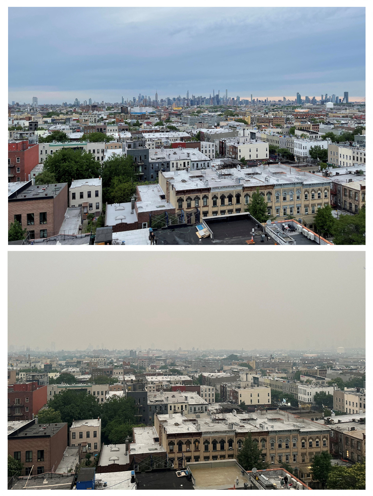 Ο αέρας μυρίζει έντονα καμένο ξύλο. Οι ουρανοξύστες της πόλης, που συνήθως διακρίνονται από απόσταση πολλών χιλιομέτρων, σχεδόν εξαφανίστηκαν. Σύμφωνα με το CNN ο κόκκινος συναγερμός επηρεάζει 55 εκατομμύρια ανθρώπους, στην Ανατολική Ακτή όπου και τα σχολεία ακύρωσαν υπαίθριες δραστηριότητες, όπως αθλητικούς αγώνες και εκδρομές.