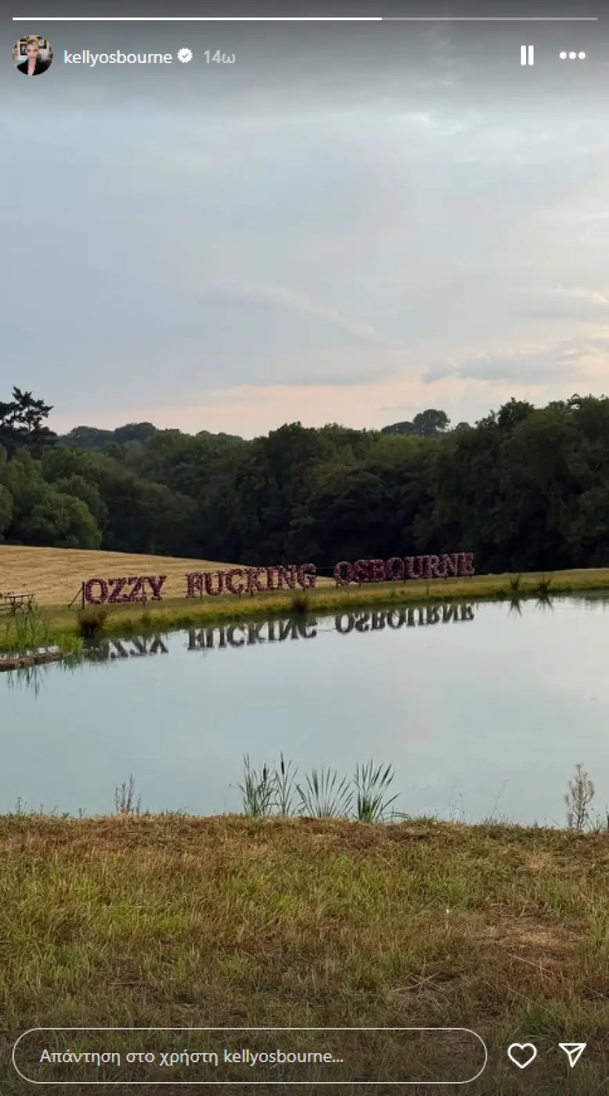 Η τραγουδίστρια κοινοποίησε στο Instagram μία ανθοσύνθεση, που σχημάτιζε τη φράση: «Όζι φάκινγκ Όσμπορν», τοποθετημένη στις όχθες της λίμνης της οικογένειας Όσμπορν.