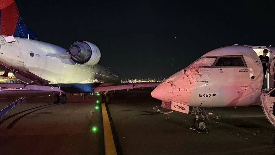 The right wing of one @Delta plane collided with the nose of the other plane, according to Air Traffic Control audio.https://t.co/ICrgCP2ZsM… pic.twitter.com/ffx9i4xftV