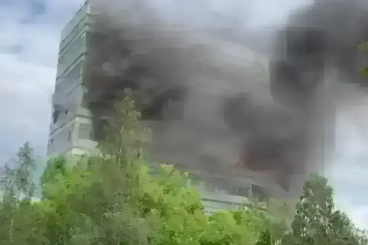 Οπτικό υλικό που αναρτήθηκε στο Telegram δείχνει ανθρώπους να σπάνε τα τζάμια των παραθύρων καθώς μαύρος καπνός υψώνεται πάνω από το κτίριο ενώ φλόγες έχουν τυλίξει τους πρώτους ορόφους του.