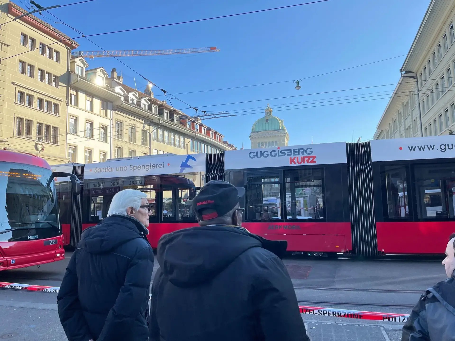 Η αποκλεισμένη περίμετρος διευρύνεται συνεχώς. Όπως δείχνουν οι φωτογραφίες, ο αστυνομικός κλοιός βρίσκεται φτάνει μέχρι και μερικές εκατοντάδες μέτρα μπροστά από το Ομοσπονδιακό Παλάτι, στην πλατεία Bärenplatz, όπου η αστυνομική ταινία είναι κολλημένη σε πάγκους της αγοράς.