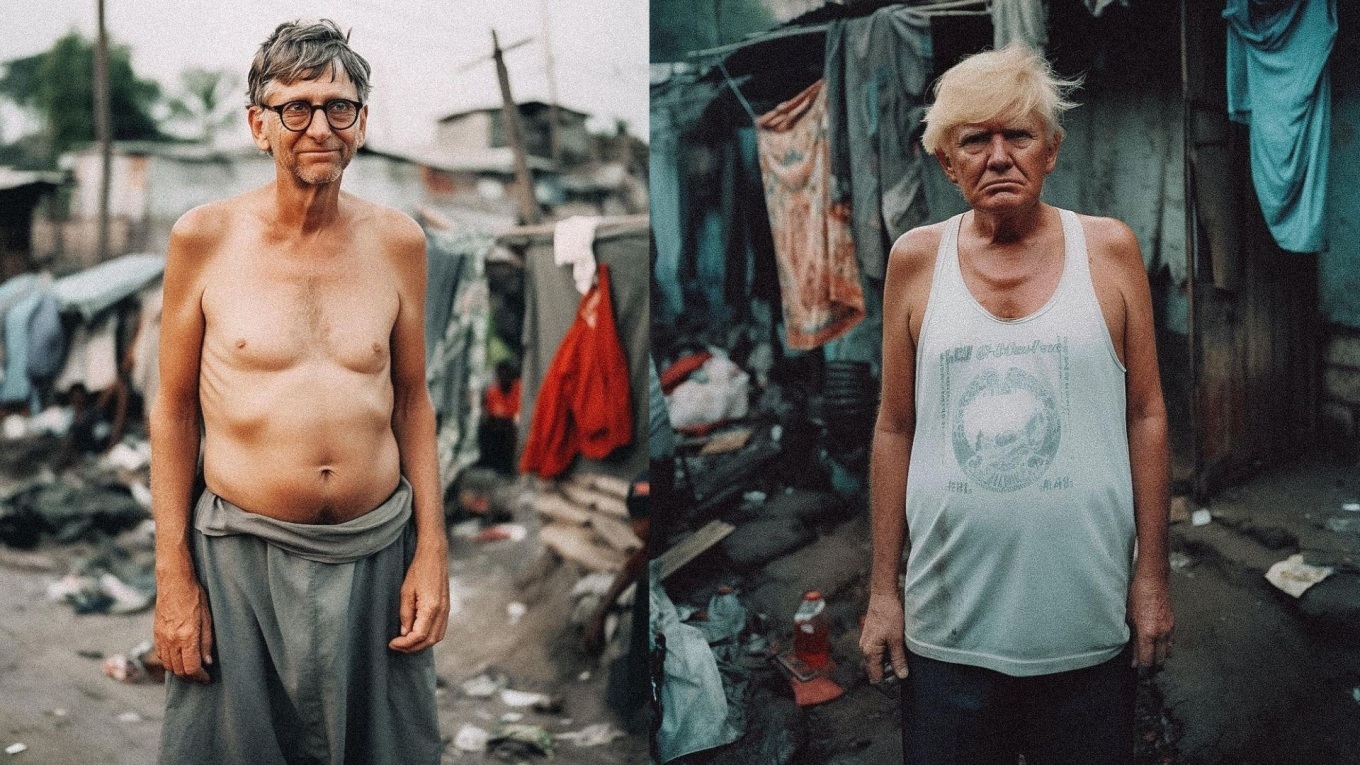 Οι εντυπωσιακές εικόνες που δημιούργησε ο Ινδός καλλιτέχνης Gokul Pillai δείχνουν τα πορτρέτα των Ντόναλντ Τραμπ, Έλον Μασκ, Μαρκ Ζούκερμπεργκ, Γουόρεν Μπάφετ, Μπιλ Γκέιτς και Τζεφ Μπέζος ως «slumdog billionaires».