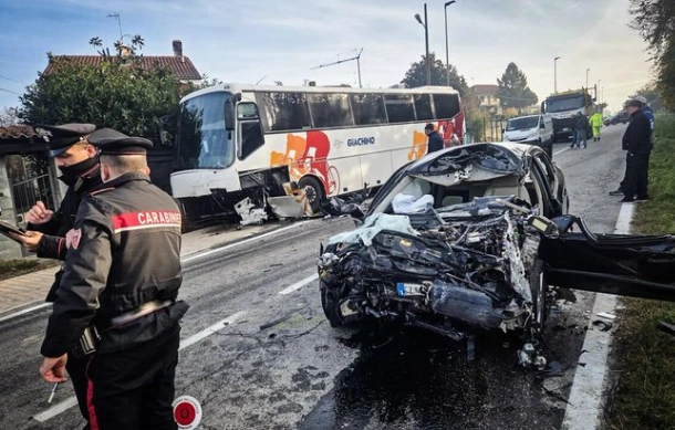 Ο οδηγός του λεωφορείου κατέθεσε ότι το αυτοκίνητο κινείτο με μεγάλη ταχύτητα προς το λεωφορείο και παρά την προσπάθειά του να αποφύγει τη σύγκρουση στρίβοντας πλήρως δεξιά, η σύγκρουση ήταν αναπόφευκτη. Στο σημείο έσπευσαν δύο ασθενοφόρα του 118 και ελικόπτερο διάσωσης από το Τορίνο, αλλά οι προσπάθειες ανάνηψης του οδηγού του αυτοκινήτου απέβησαν άκαρπες.