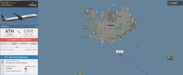 Σύμφωνα με πληροφορίες, ένας από τους πιλότους είχε σπάσει το πόδι του στην Αθήνα και η πτήση κατευθύνθηκε στην Ισλανδία για να αντικατασταθεί από νέο πιλότος. Οι επιβάτες δεν είχαν λάβει σχετική ενημέρωση, και όπως είναι λογικό, υπήρξε αναστάτωση. Πρόκειται για την πτήση UA125.