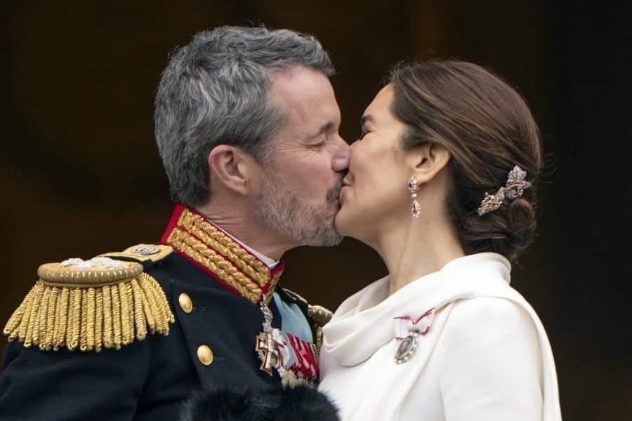 Στη συνέχεια, ο Φρέντερικ συνοδεύτηκε από τη σύζυγό του Μαίρι – η οποία είναι πλέον βασίλισσα της Δανίας, και τα παιδιά τους. Καθώς η οικογένεια χαιρέτησε το πλήθος, ο βασιλιάς Φρέντερικ έδωσε ένα θερμό φιλί στη σύζυγό του με τον κόσμο να ξεσπά σε χειροκροτήματα.