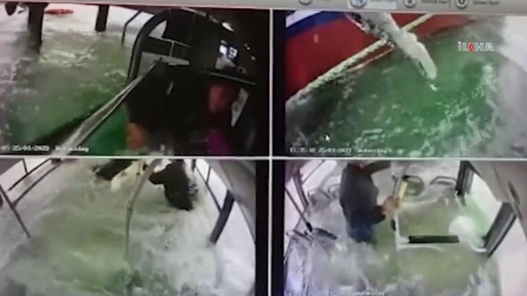 Όπως μεταδίδουν τουρκικά μέσα ενημέρωσης, το νερό μπήκε ορμητικά μέσα στο λεωφορείο, ενώ το βίντεο στη γειτονική Τουρκία δείχνει τον αβοήθητο οδηγό και τους επιβάτες να προσπαθούν να σωθούν από τη βίαιη δύναμη του νερού. Όλοι όσοι επέβαιναν στο λεωφορείο είχαν Άγιο και επέζησαν, ενώ περαστικοί έσπασαν τα παράθυρα για να τραβήξουν τους επιβάτες σε ασφαλές μέρος.