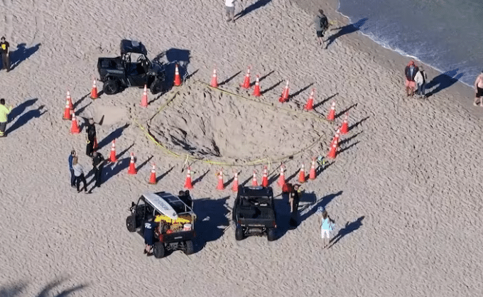 Το βάρος της άμμου έθαψε εντελώς το κορίτσι, ενώ το αγόρι θάφτηκε μέχρι το στήθος. Το βίντεο που εξασφάλισε το CBS Miami έδειξε τους ανθρώπους να ξεθάβουν άμμο από την τρύπα καθώς προσπαθούσαν να σώσουν το παγιδευμένο κορίτσι.