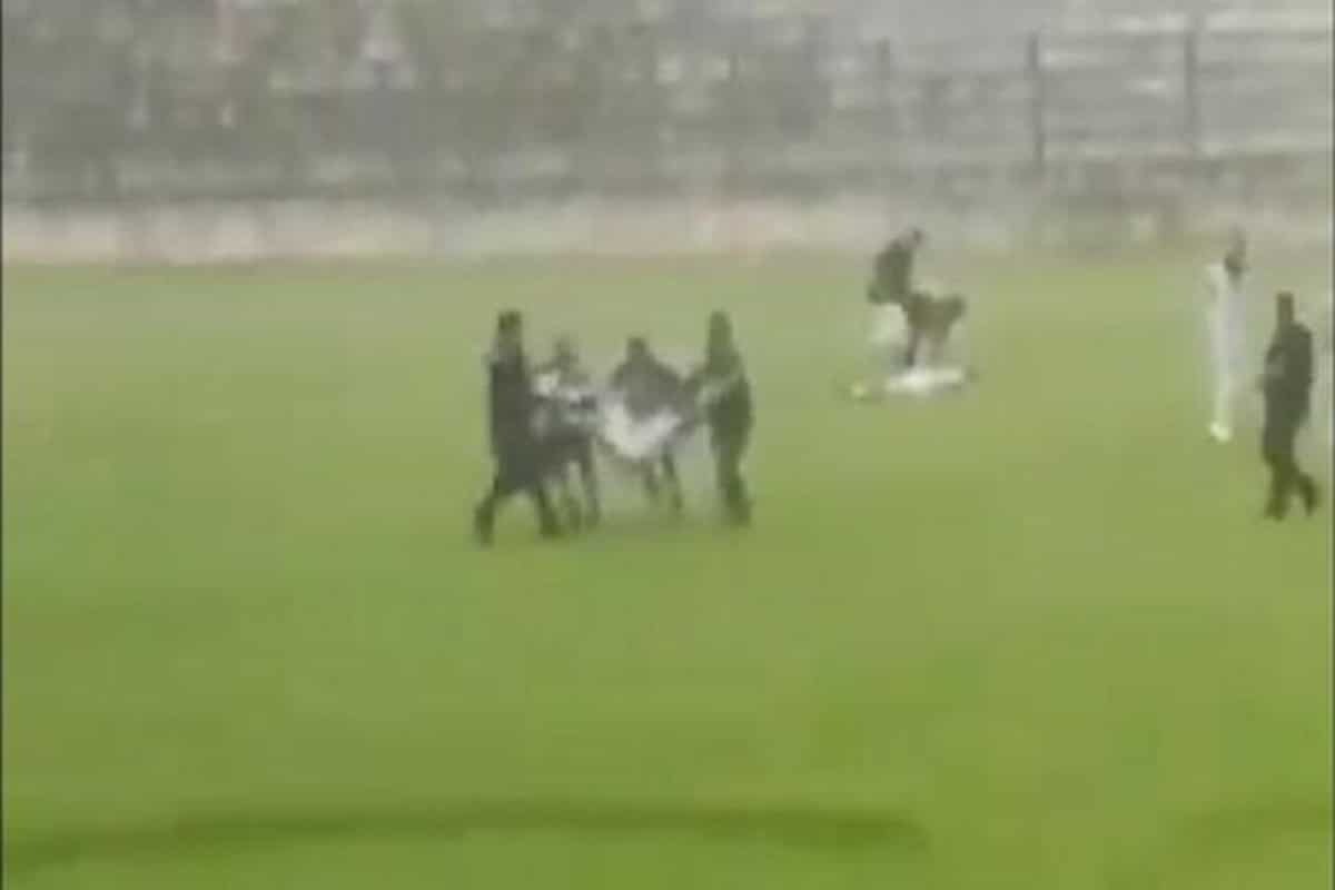 Ανατριχιαστικά πλάνα που καταγράφηκαν λίγες στιγμές μετά το χτύπημα του κεραυνού δείχνουν τον αγωνιστικό χώρο γεμάτο με τραυματισμένους παίκτες και αξιωματούχους που αγωνίζονται απεγνωσμένα να τους μεταφέρουν σε ασφαλές μέρος προκειμένου να τους παρασχεθεί ιατρική περίθαλψη.