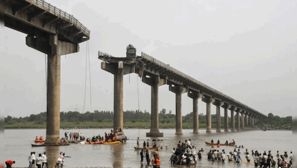 Ο υπουργός Υγείας του Γκουτζαράτ, Ρουσικές Πατέλ, δήλωσε ότι πολλά οχήματα έπεσαν μέσα στον ποταμό Μαχισαγκάρ όταν κατέρρευσε τμήμα της γέφυρας Γκαμπίρα σήμερα το πρωί.