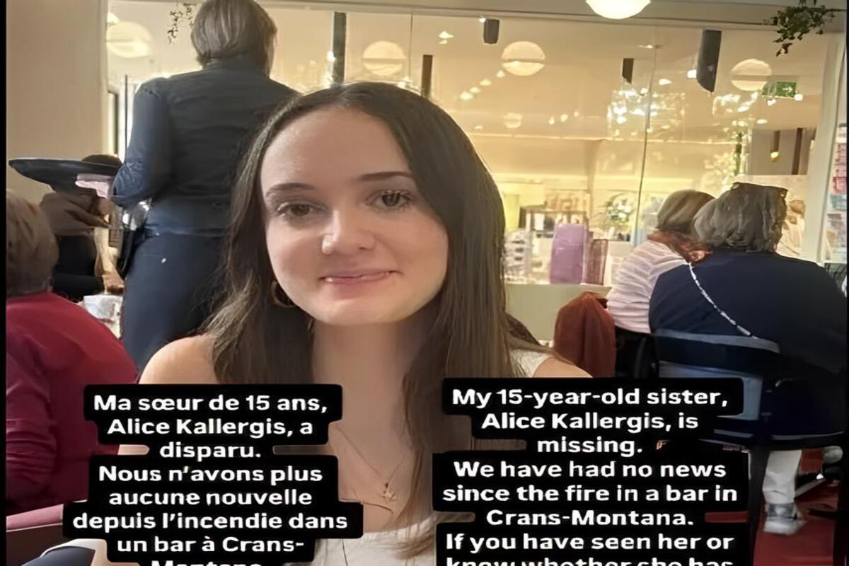 Η οικογένεια, συγγενείς και φίλοι της Αλίκης Καλλέργη (Alice Kallergis) απευθύνουν εκκλήσεις μέσω κοινωνικών δικτύων για να εντοπίσουν την 15χρονη που αγνοείται μετά την καταστροφική πυρκαγιά στο ελβετικό χιονοδρομικό κέντρο Κραν Μοντανά στην Ελβετία.