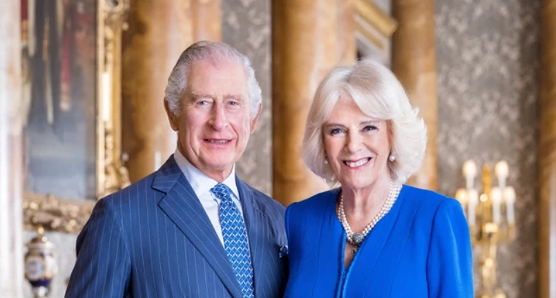 Πρόκειται για μια πιο χαλαρή επιλογή από την περσινή φωτογραφία που τραβήχτηκε στην αίθουσα του θρόνου στο παλάτι του Μπάκιγχαμ μετά τη στέψη του βασιλιά.