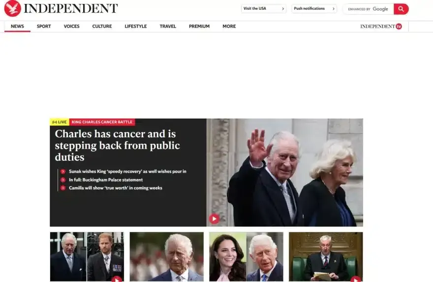 «Ο βασιλιάς έχει καρκίνο», γράφει με κεφαλαία η Daily Mai, ενώ και άλλα βρετανικά sites έχουν τα κεντρικό θέμα την ανακοίνωση του Μπάκιγχαμ.