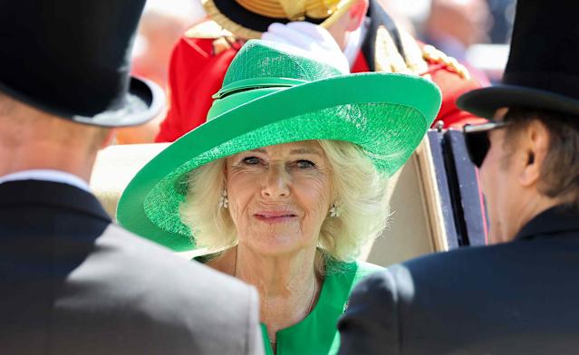 Ευτυχώς όμως για την ίδια, μια από τις πιο έμπιστες φίλες της ήταν εκεί για να τη στηρίξει. Η Καμίλα εμφανίστηκε στο ιπποδρόμιο με ένα κομψό πράσινο παλτό-φόρεμα και ασορτί καπέλο Philip Treacy. Όμως, σύμφωνα με τη ειδικό στην ανάγνωση χειλιών Nicola Hickling, που μίλησε εκ μέρους του Slingo, το καπέλο έγινε η αιτία… πανικού.
