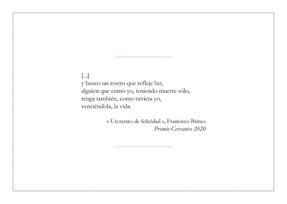 Η κάρτα περιλαμβάνει ένα απόσπασμα από ποίημα του Φρανθίσκο Μπρίνες: