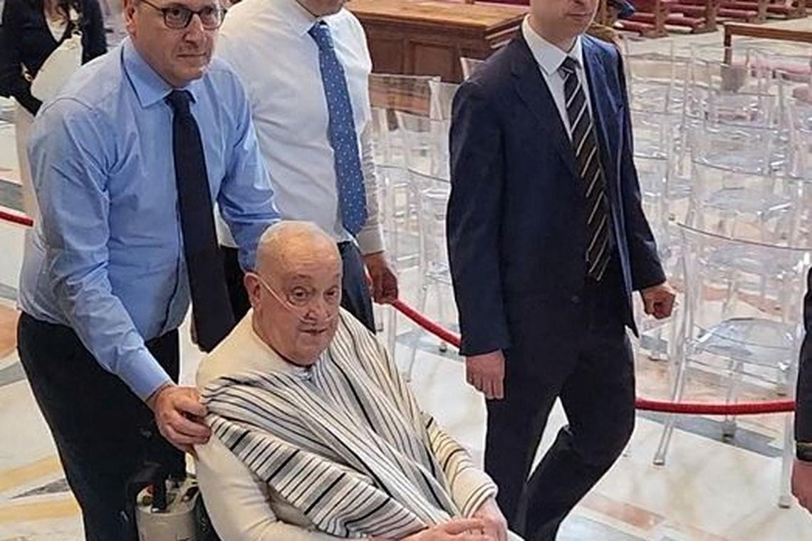 Ο Ποντίφικας σταμάτησε για λίγο να χαιρετήσει τους επισκέπτες ενώ καθόταν σε αναπηρικό καροτσάκι, φορώντας μαύρο παντελόνι, ένα λευκό πουκάμισο με μακρύ μανίκι και μια ριγέ κουβέρτα ριγμένη στους ώμους του. Επίσης, είχε σωλήνα οξυγόνου κάτω από τη μύτη του.