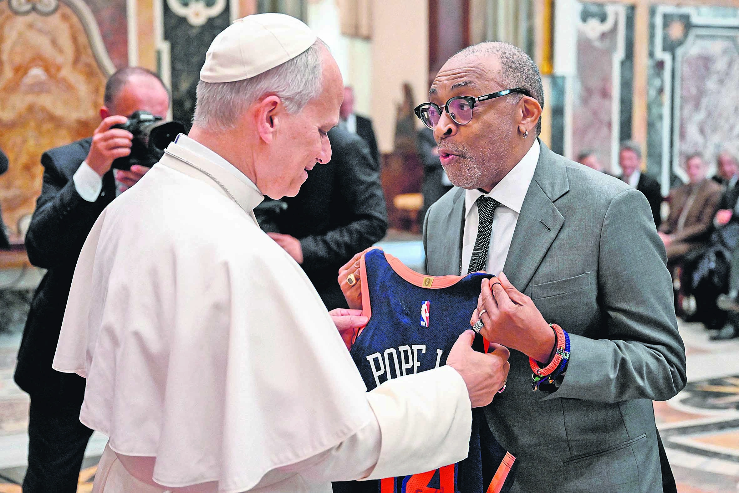 Μετά το τέλος της ακρόασης, οι παρευρισκόμενοι χαιρέτησαν τον Πάπα, ενώ ορισμένοι του προσέφεραν δώρα. Ο σκηνοθέτης Σπάικ Λι του χάρισε μια φανέλα των Νιου Γιορκ Νικς που αγωνίζονται στο NBA με τυπωμένες τις λέξεις «Pope Leo» και τον αριθμό 14, καθώς είναι ο 14ος Πάπας με το όνομα Λέων, ενώ η Κέιτ Μπλάνσετ του χάρισε ένα βραχιόλι. Συνομιλώντας με τον Ποντίφικα, η Αυστραλή σταρ αναφέρθηκε στο έργο της Υπατης Αρμοστείας του ΟΗΕ για τους πρόσφυγες και συγκεκριμένα στη δημιουργία του ταμείου για τους εκτοπισμένους κινηματογραφιστές, οι φωνές των οποίων συχνά περιθωριοποιούνται.