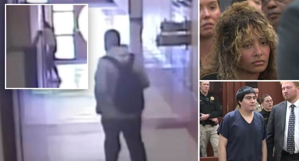 Το ανατριχιαστικό κλιπ, που έδωσε στην δημοσιότητα το τηλεοπτικό δίκτυο KLAS-TV, δείχνει τον Jonathan Martinez Garcia να περπατάει στο Γυμνάσιο του Ελντοράντο και να προσπαθεί να ανοίξει την πόρτα μίας τάξης. Ο 17χρονος βρίσκεται στην φυλακή όπου εκτίει ποινή φυλάκισης τουλάχιστον 16 ετών, αφού κρίθηκε ένοχος για αποτρόπαια επίθεση στην πρώην δασκάλα του, Sade, τον Απρίλιο του 2022. Θα μπορούσε να παραμείνει πίσω από τα κάγκελα για έως και 40 χρόνια.