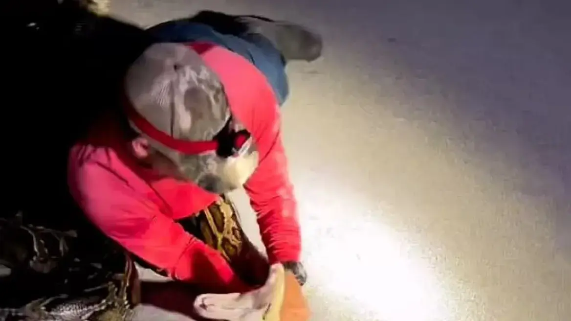 Στο βίντεο που ανήρτησαν και μεταδίδει η Telegraph.co.uk στα social media οι κυνηγοί φιδιών Στίβεν Γκάουτα και Τζέικ Βάλερι έχει καταγραφεί καρέ-καρέ η μάχη που έδωσαν με τον πύθωνα βάρους 56 κιλών ο οποίος είναι τόσο μακρύς όσο μια μια ενήλικη καμηλοπάρδαλη σε ύψος.
