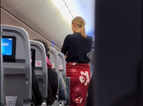 Ένα βίντεο που δημοσιεύτηκε στο TikTok δείχνει την επιβάτιδα να εγκαταλείπει τη θέση της στο αεροσκάφος, και αντ’ αυτού να επιλέγει να σταθεί όρθια στο διάδρομο με μια κουβέρτα τυλιγμένη στη μέση της.