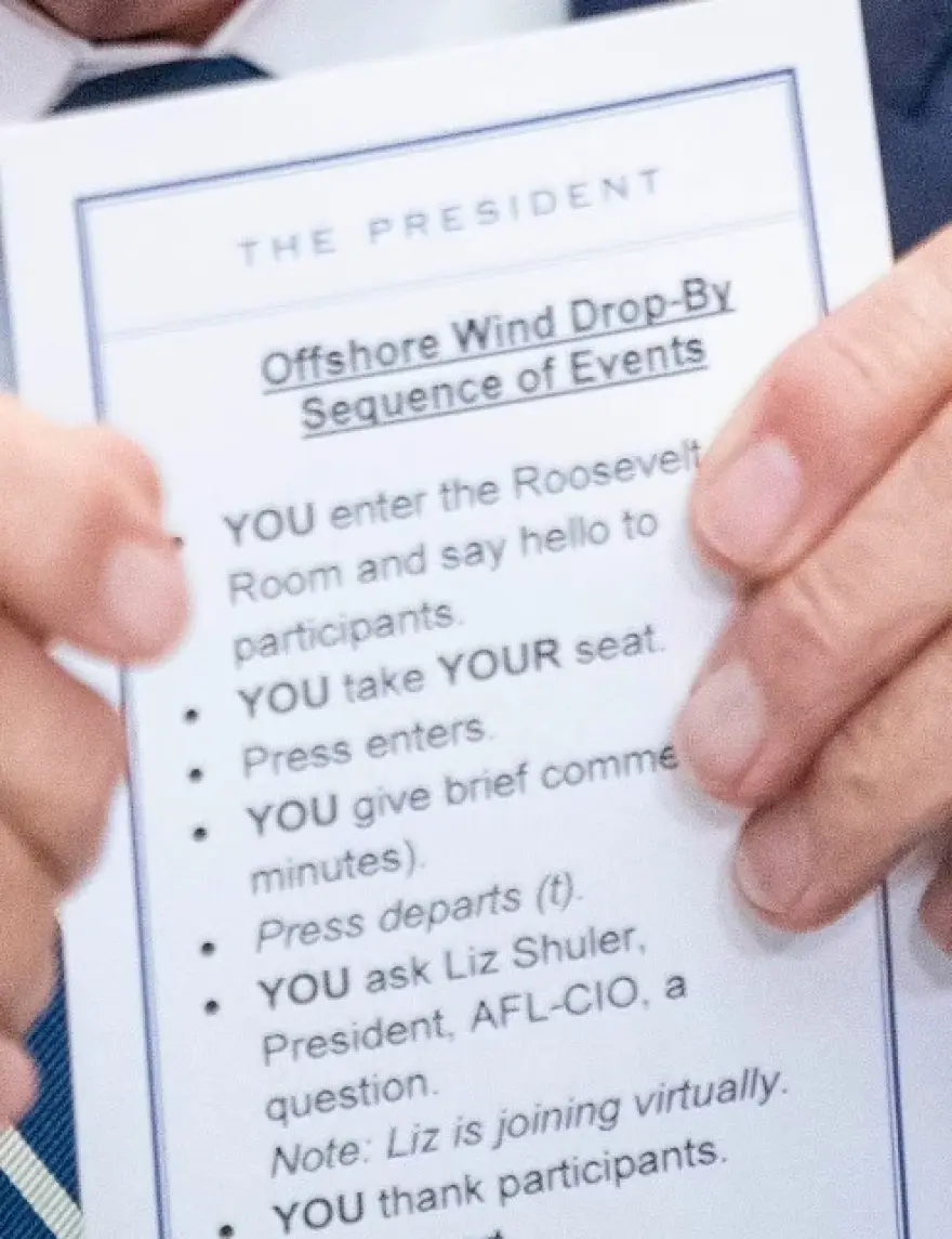 Αφού αποχώρησαν οι δημοσιογράφοι, ο Μπάιντεν κλήθηκε να μιλήσει σε κάποιους από τους παρευρισκόμενους στη συνάντηση. «ΕΣΕΙΣ ρωτάτε την Liz Shuler, πρόεδρο της AFL-CIO, μια ερώτηση» και στη συνέχεια «ΕΣΕΙΣ ευχαριστείτε τους συμμετέχοντες» και «ΕΣΕΙΣ αποχωρείτε».