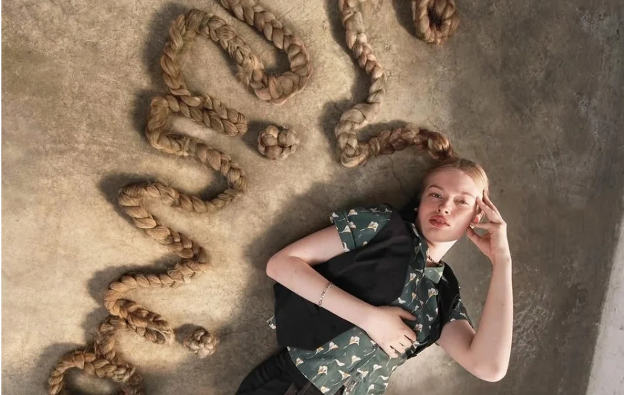 Σε μια άλλη φωτογραφία, η τρανς κόρη του Έλον Μασκ, φορά μια ψεύτικη πλεξούδα μήκους 12 μέτρων, απλωμένη στο πάτωμα, σχηματίζοντας το όνομά της με αυτήν. Η Βίβιαν φοράει ένα φλοράλ πράσινο κοντομάνικο πουκάμισο, μαύρη βερμούδα και μαύρο γιλέκο. «Είδα τον εαυτό μου στον καθρέφτη και είπα κάτι του τύπου: ‘Ω, διάολε, είμαι πανέμορφη’» δήλωσε.