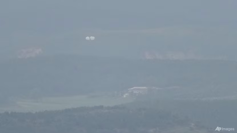 Οι σάκοι που κρέμονται από τα μπαλόνια περιέχουν «κυρίως χαρτί και πλαστικά σκουπίδια», διευκρίνισε η ίδια πηγή.