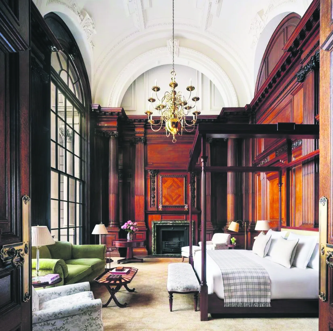 Το κτίριο, που λειτούργησε ως το κέντρο επιχειρήσεων για στρατιωτικούς ηγέτες, εγκαταλείφθηκε για δεκαετίες και ο όμιλος Hinduja Group από την Ινδία το απέκτησε για να του δώσει νέα πνοή. Ο αρχιτέκτονας Τζέοφ Χαλ, που ανέλαβε το «λίφτινγκ», το βρήκε σε άθλια κατάσταση. «Μπορούσα να δω τη μεγαλοπρέπεια, τη σημασία του, αλλά ήταν απογοητευτικό και σοκαριστικό αυτό που είχε κάνει η κυβέρνηση στο κτίριο», λέει ο Χαλ, διευθυντής της EPR Architects. Πλέον, αποτελεί το πρώτο ξενοδοχείο «Raffles» στο Ηνωμένο Βασίλειο, με πολυτελή δωμάτια, στα οποία η διαμονή ξεκινάει από τα 1.300 ευρώ ανά διανυκτέρευση. Εκτείνεται σε 14 επίπεδα (επτά ορόφους και έξι υπόγεια), συνολικής επιφάνειας 76.000 τετραγωνικών μέτρων. Διαθέτει 120 δωμάτια και σουίτες, μία αίθουσα χορού 600 ατόμων και το πρώτο «σπα» Guerlain του Λονδίνου.